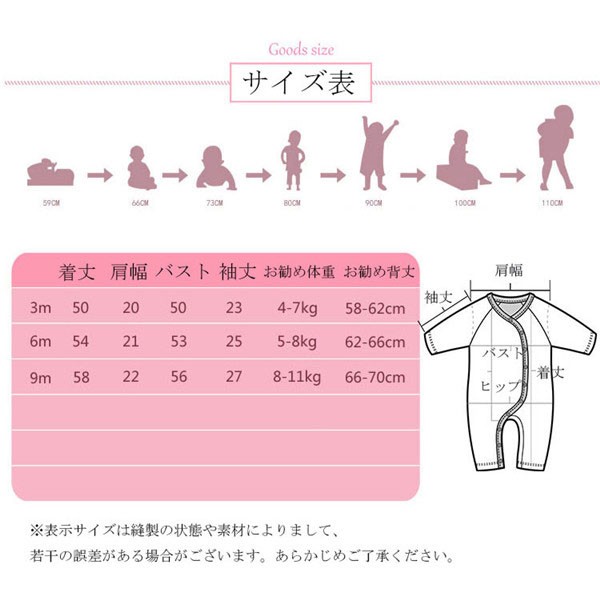 ベビー用 ロンパース カバーオール 前開き 女の子 長袖 レース コットン100% 白 レッド ピンク 3-9Mメイン素材:コットンカラー:ホワイト レッド ピンクサイズ:3M 6M 9M肌触りがよく、保温性と発汗性に優れた刺激の少ないカバーオールです。敏感肌のベビーちゃんも安心です前開き & スナップボタン式、着せやすく、オムツ替えも便利ですつま先まですっぽりと包んで、どんなに動いても大丈夫!お子様の誕生日・結婚式・記念日・出産祝い・お祝いギフトなどプレゼントとしてもご利用いただけますサイズは、実寸を測っているため多少の誤差はございます。実商品とPC画面では、多少見た目の色に違いがございます。初期不良の場合、未使用の商品のみ到着日から7日以内にご連絡頂ければご返金、交換対応させて頂きます。●商品が到着しましたら、必ず中の商品を確認していただき、商品の到着後、3-4日間以内に必ず弊社までご連絡ください。★いかなる理由であってもご使用後の返品交換は承れません。