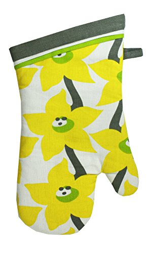 MUkitchen 100% Cotton Terry-Lined Designer Print 13" Oven Mitt, Sunshine - Set of 2