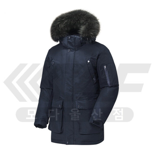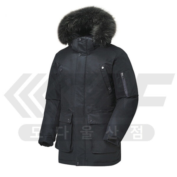 야상형 사파리 DUCK DOWN JACKET.면 터치 느낌의 원단을 사용하여 원단 내구성을 높힘.로고 스냅을 포인트로 하여 캐주얼한 느낌을 준 제품.후드탈부착이 가능하고 천연 라쿤 FUR로 고급스러움을 더함.