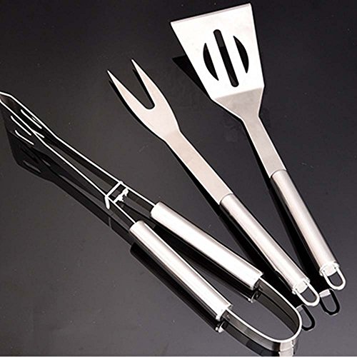 BBQ GrillingTools Set Spatula Fork Tongs 3 Pieces Utensils Stainless Steel