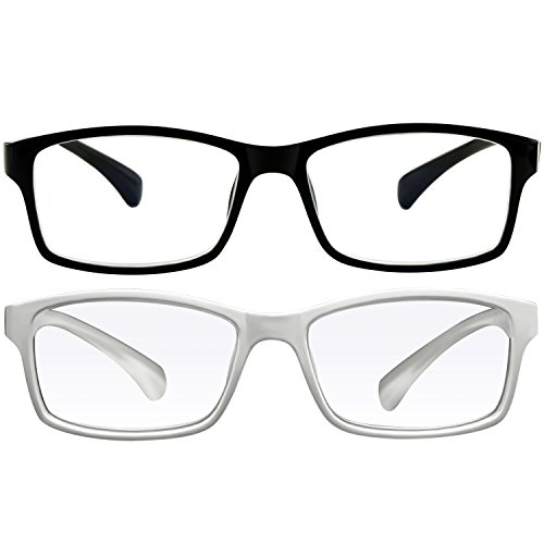 Black White Computer Reading Glasses 0.00 _ Protect Your Eyes Against Eye Strain, Fatigue and Dry Eyes from Digital Gear with Anti Blue Light, Anti UV, Anti Glare, and are Anti Reflective