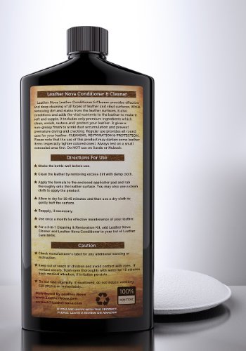 Restore Your Leather's Luster, the Easy Way - Leather Nova's Conditioner & Cleaner is the ultimate 3-in-1 restorer for all things leather (along with vinyl and plastic). Made with premium ingredients that effectively removes dirt, grime and stains, while also preventing future wear and tear to keep your most prized possessions looking sleek and soft