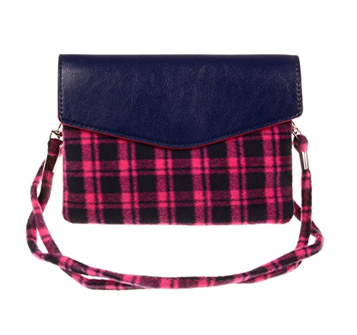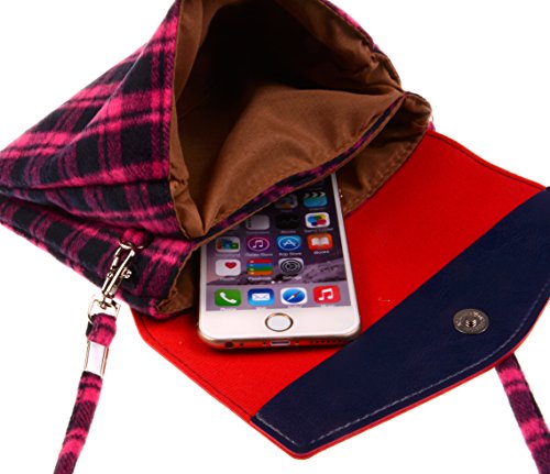 - Title : KISS GOLD(TM) Horizontal PU Leather&Velveteen Pin Check Mini Shoulder Bag Cellphone Pouch (Rosered)