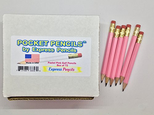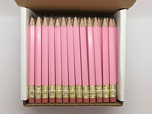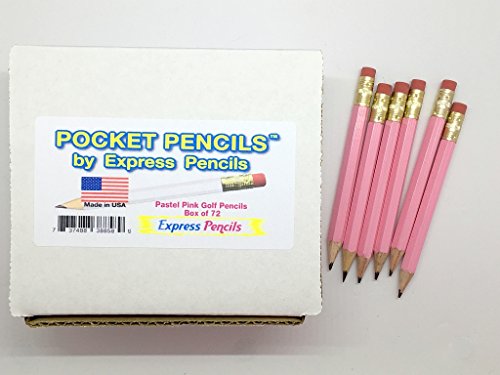 Half Pencils with Eraser - Golf, Classroom, Pew - Hexagon, Sharpened, #2 Pencil, Color - Pastel Pink , Box of 72 Golf Pocket Pencils TM