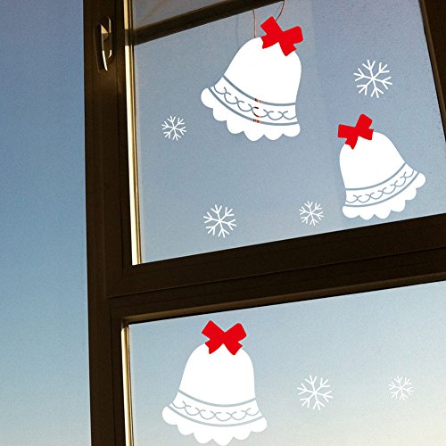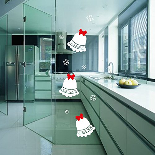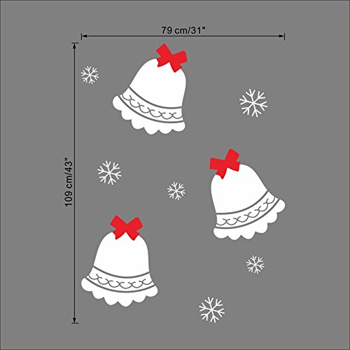 Dnven (31"w X 43"h) Three Cute Jingle Bells with Snowflakes Happy Christmas Decorative Wall Stickers Wall Decals Door Window Stickers Glass Decals for...