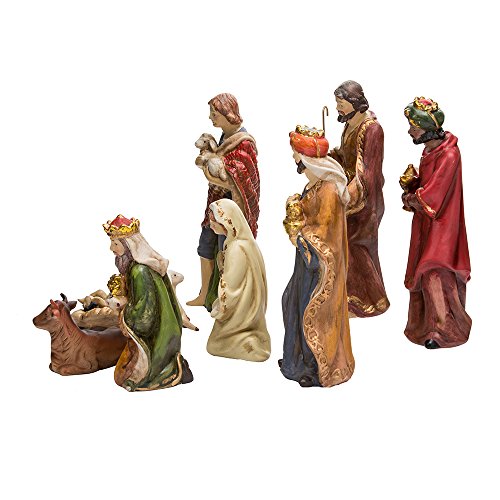This Kurt Adler 9-Inch Porcelain Nativity Figure Table piece Set of 9 is a beautiful, detailed way to add to your Christmas décor while being reminded of the true meaning of Christmas. This set of 9 loose figurines features the Holy Family, the Three Wise Men, a shepherd, a donkey and a sheep. Each one is beautifully painted and detailed.Feature