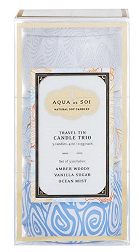 SOI Company The Aqua de SOi 100% Premium Natural Soy Candle, 3 Candle Nuovo Gift Trio, Ocean Mist, Amber Woods, Vanilla Sugar