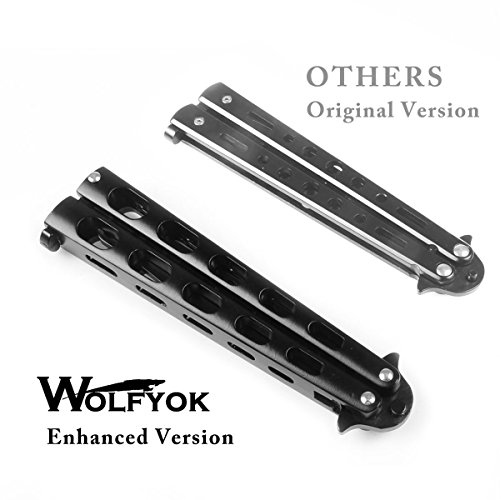 UPGRADED VERSION: Unlike the original butterfly trainer, Wolfyok butterfly knife is a enhanced version which is more stronger and thicker, but skeletonized designed to reduce weight