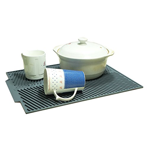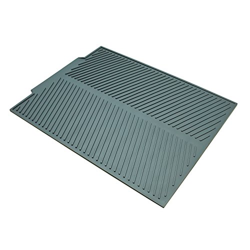 YR Large Silicone Dish Drying Mat,Flume Folding Draining Mat,Non-slip Trivet for Kitchen Counter,17 X 13 inches Gray