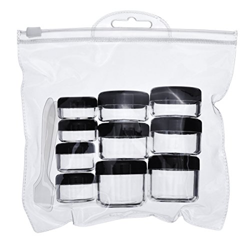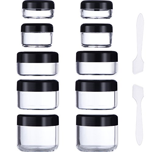- Package includes: includes 10 pieces empty clear plastic sample container with black lid and 2 pieces mini spatula; Good for travel use