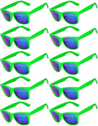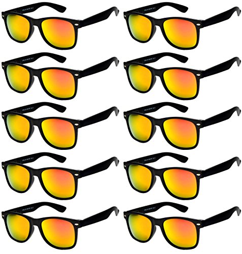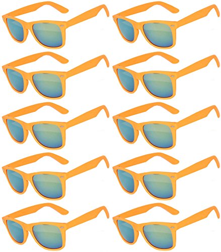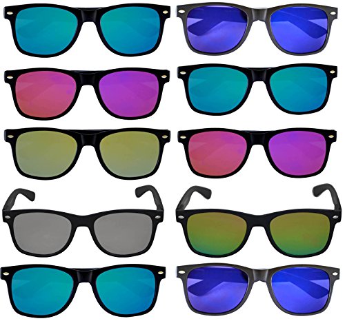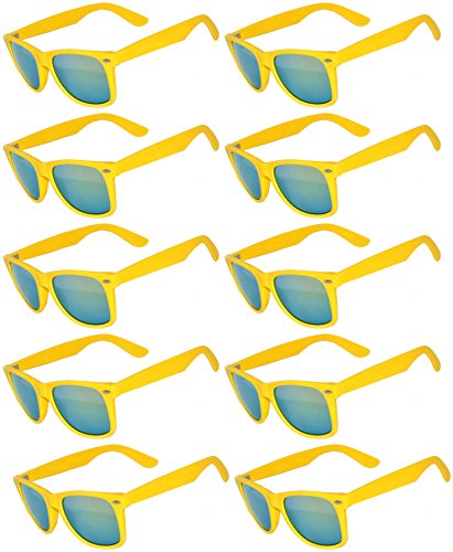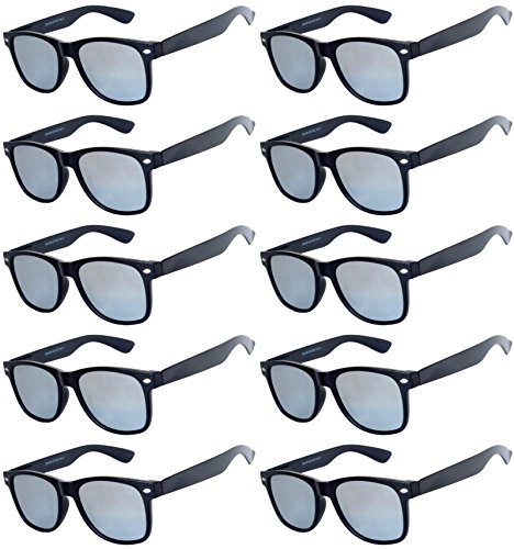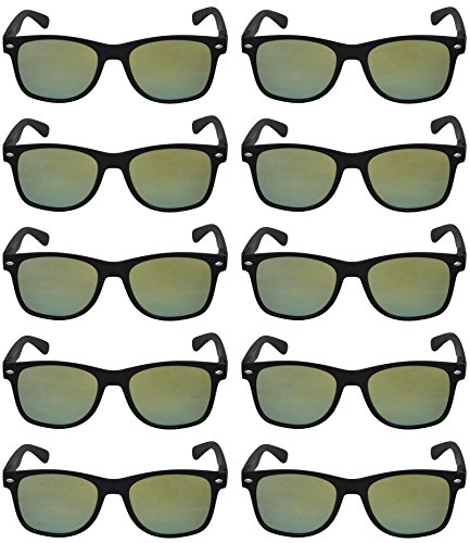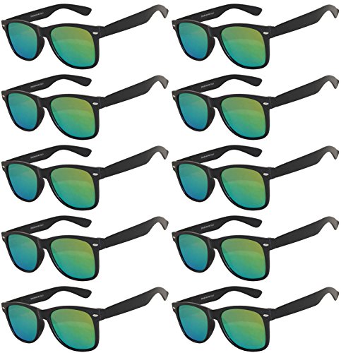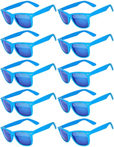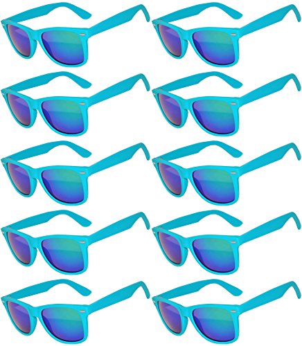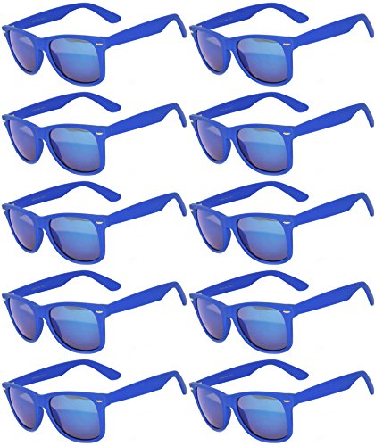 Wholesale of 10 Pairs Mirrored Reflective Blue Lens Sunglasses Dark Blue Matte Frame Horn Rimmed Style OWL Lens