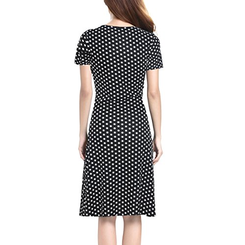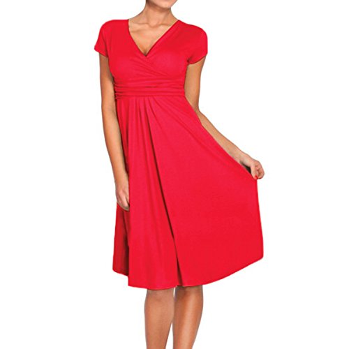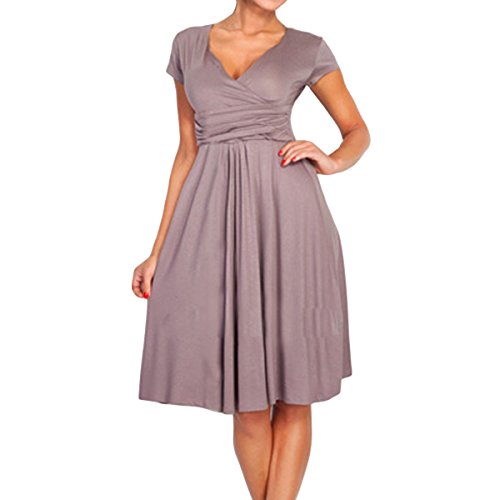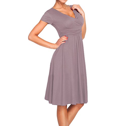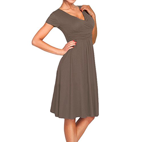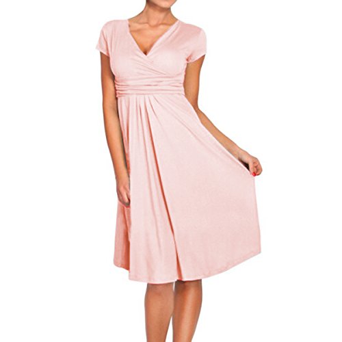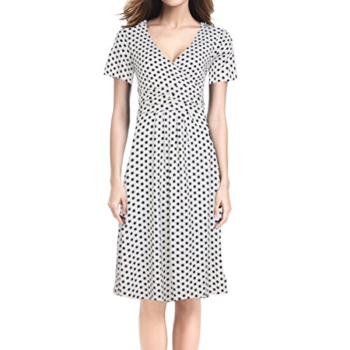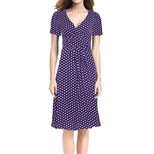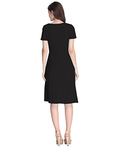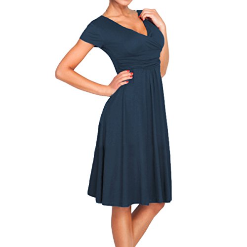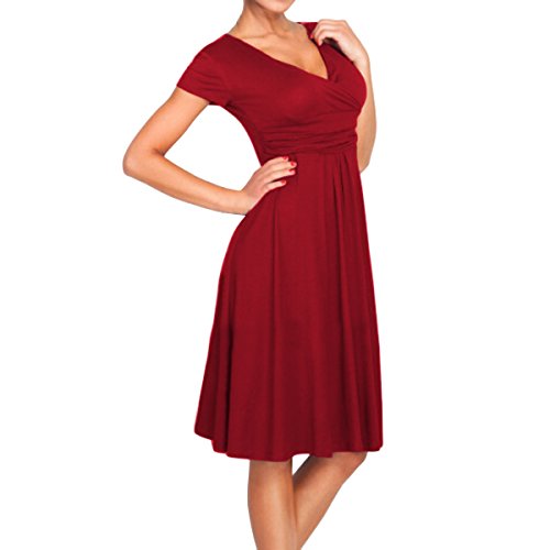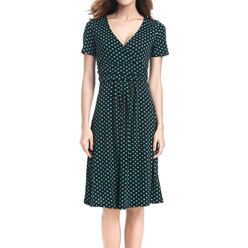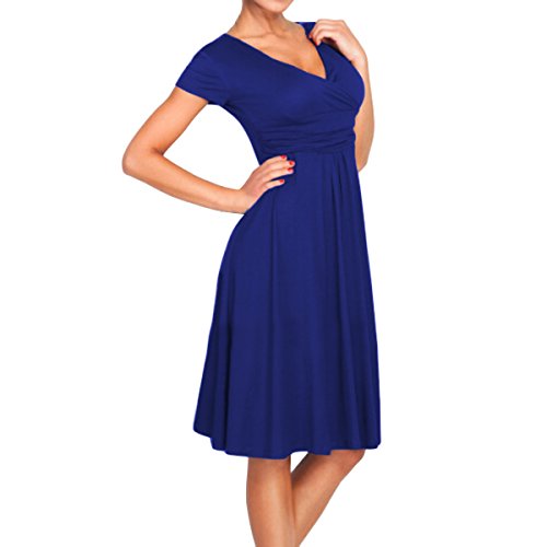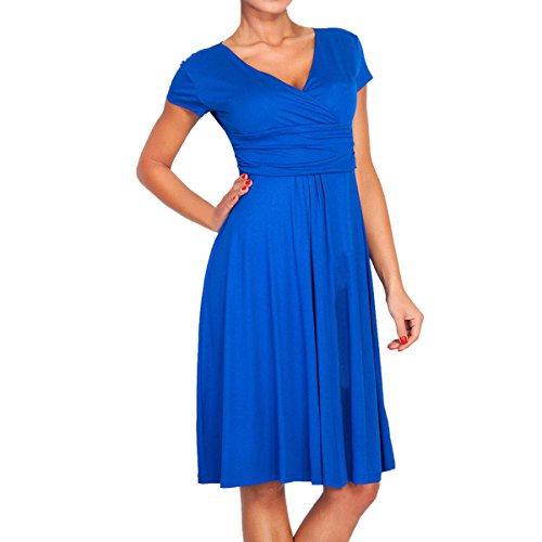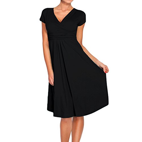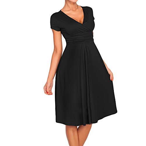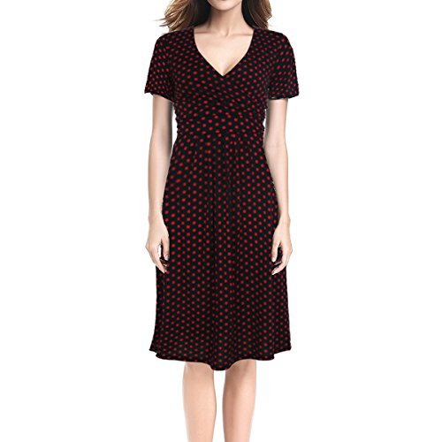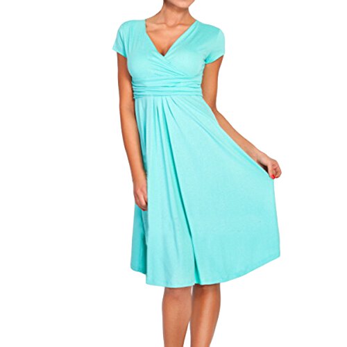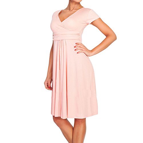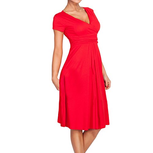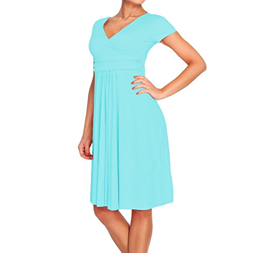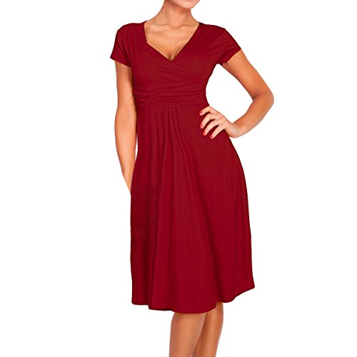 | SueJoe Women's Fit and Flare Dress V-neck Ruched Flowy Pleated Cap Sleeve Dress |