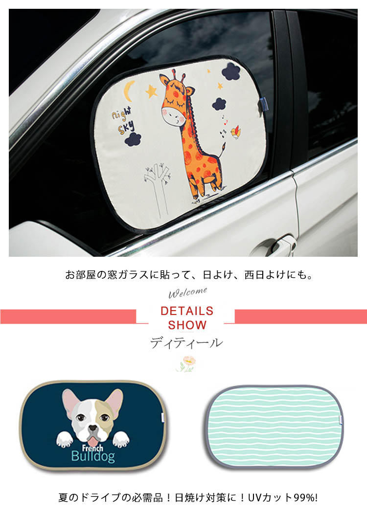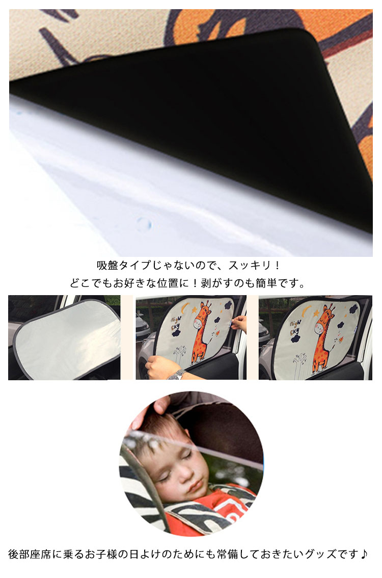 | 吸盤なしでピタっと貼り付け!ドライブの必需品のカーシェード。吸盤不要でかんたんに着脱できます。その他にも、駐車中の防犯・車上荒らし対策にもオススメ。お部屋の窓ガラスに貼って、日よけ、西日よけにも。 | |