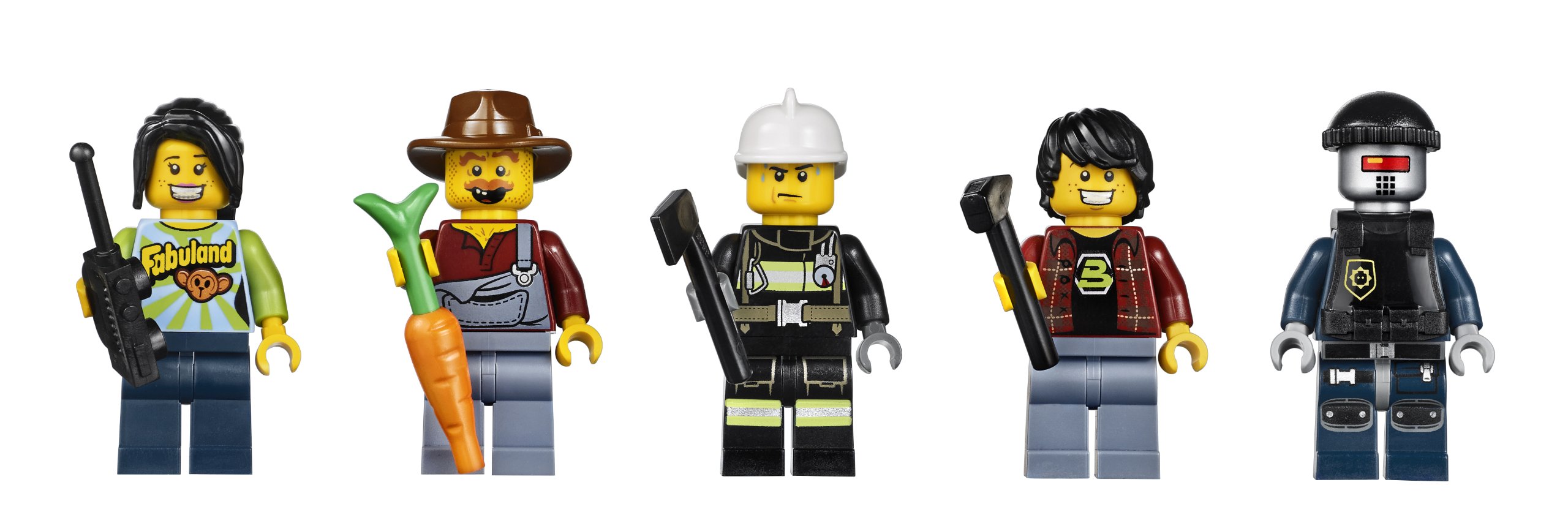 With Blaze Firefighter, Hank Heystack, Robo Swat, Fab Girl, Black Tron Boy mini figures.