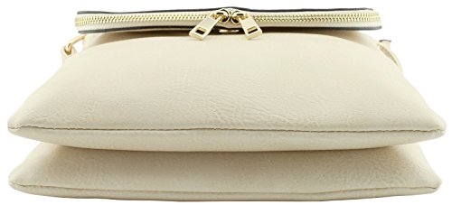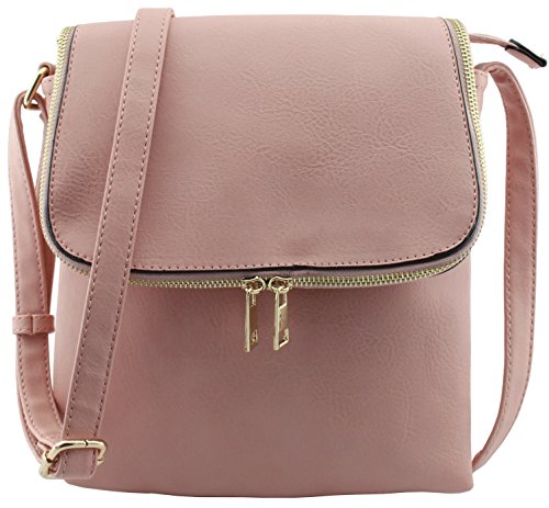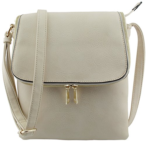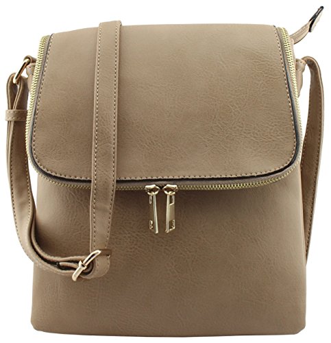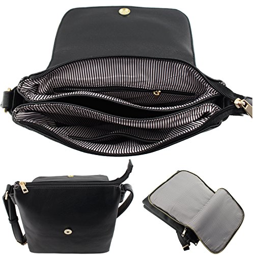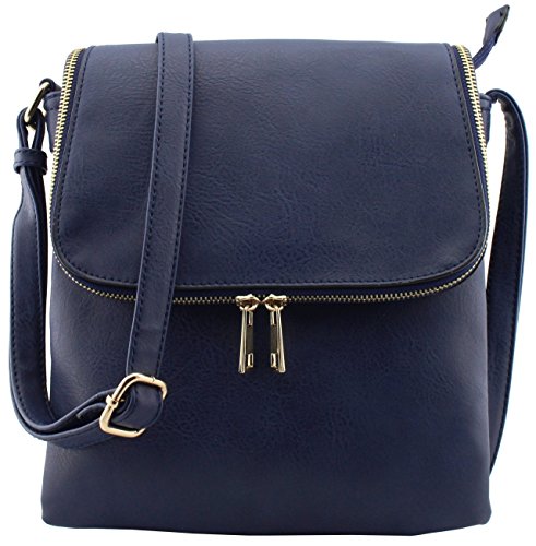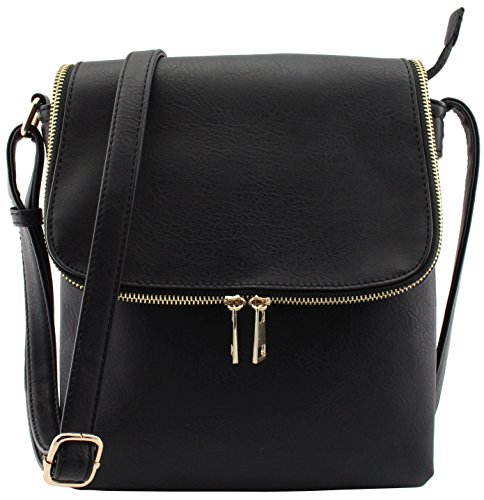 Classic design 3 compartments zipper top closure cross body bags with magnetic closure flap! Adjustable shoulder strap 26.5" drop max. 1 zipper pocket and 1 open slip pocket inside. Medium to large size cross body bags. Size: 9.5"(L) x 10.5"(H) x 3"(W) Flap also works as pocket with zipper closure but thin.Feature