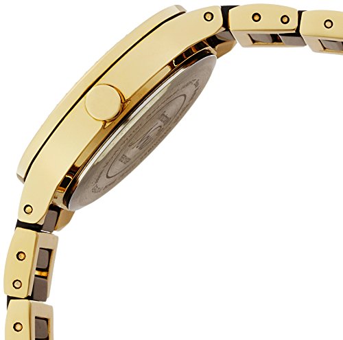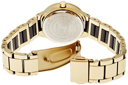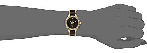 Round two-tone watch with Swarovski crystal-set bezel, glossy black dial, and Swarovski crystal markers at 3, 6, 9, and 12 o'clock