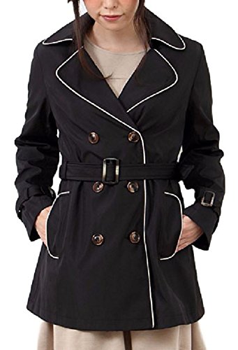 -. Title : (カナクレール)Canacreer トレンチ コート レディース アウター ベルト付き 長袖 無地 ハーフ丈 黒