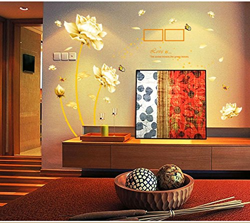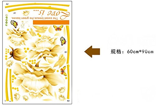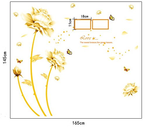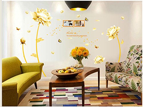 -. Title : Sworna Nature Series Removable Vinyl Mural Wall Decal Sticker, 3D Gold Flowers with Butterflies, 57 X 65-Inch