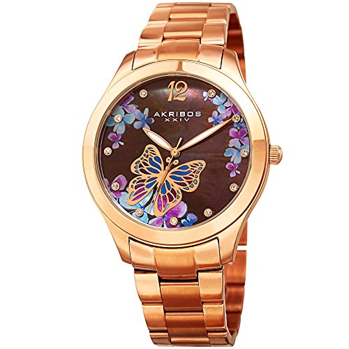 -. Title : Akribos XXIV Women's Rose-Tone Case with Genuine Swarovski Crystals and Brown Mother-of-Pearl with Butterfly Dial on Rose-Tone Stainless Steel Bracelet Watch AK953BRG
