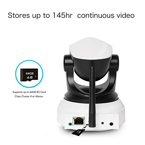 -. Feature : > Quality Wireless IP Camera : This WiFi Surveillance Wireless Security Camera provides Top image capture by high-quality optics, Auto white balance and exposure, Sharp and contrast-rich night vision, IR auto switch, Remote Internet Access, SD Card Support, Motion detection & Audio detection Alarm, Alert email, Video recording, See more and cover more with 355 degree pan and 90 degree tilt, 2 way audio, Fees-Free Ouvis apps for Android/iOS/iPad/Tablet, Fees-Free PC software. / > Enhanced Features : Easy Setup in minutes, powered by QR Scan technology; Optimized experience for Smartphone App; Enhanced WiFi Signal Performance; Multiple preset position support, you can define the position when specific event occurs or time trigger. / > Range of Application : Ideal suited to small business, factory, home usage. you can watch room, baby, toddler, pet, elder person, with sharp HD video and contrast-rich voice. / > High rated US Local Customer Service : We offer US local customer service, if you need any assistance, just call us or send email to us, we will respond quickly. / > High Level Security Protection: This camera was designed to be high level protection. If you change the default password following the app guide, It can't be hacked.