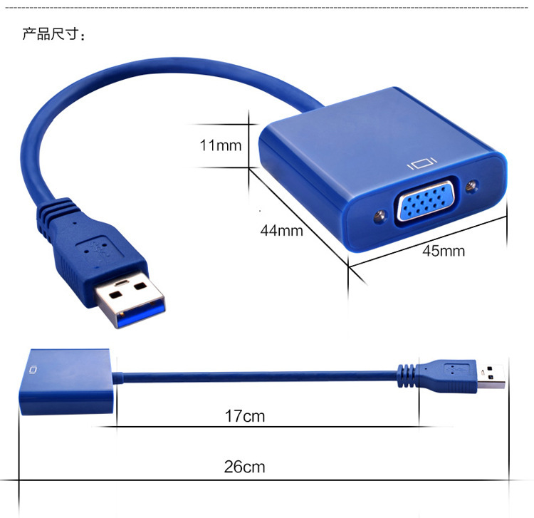 此产品常用称呼有:USB转VGA接口,USB转VGA转换器、USB转VGA、USB外置显卡