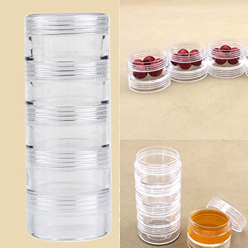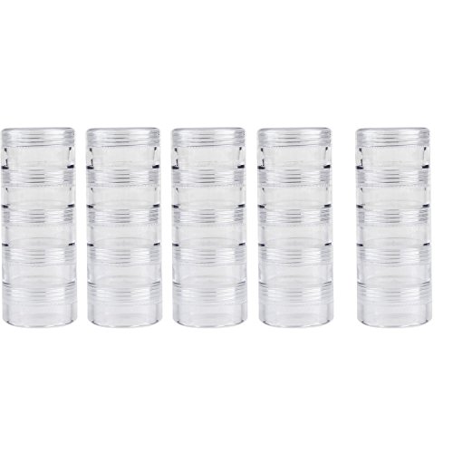 JDONOW 5 Layer cylinder Stackable Transparent Round PS Plastic Storage Container Box Super Clear Accessories Organizer Box for Beads Crafts Other Small Items,5/10 Column Combination Sale (5 Columns)