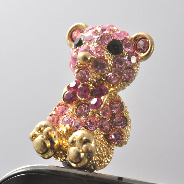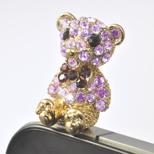 ラインスーンのついたテディベア型スマートフォン用ピアス! ゴールド、パープル、ピンク、シルバーの4色展開。 イヤホンジャックに装着するだけでスマートフォンを簡単にドレスアップできます! | |