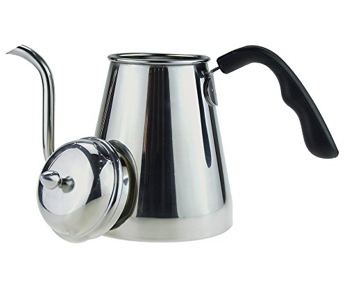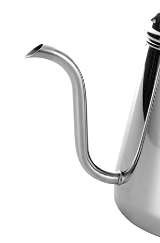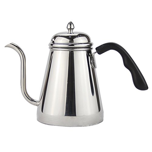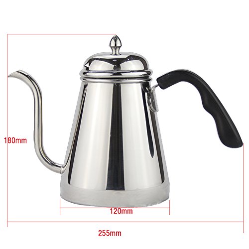 -. Feature : ¡¾Gooseneck Design:¡¿Goose neck kettle that really lets you control the flow of water to ground coffee. ?The spout is very 'accurate' and allows you to precisely control the flow of water out of the kettle. ?Perfect for pour-overs. / ¡¾Hight Stainless Steel Material¡¿ :This kettle made out of 18/8 stainless steel, which gives it a brilliant, durable, rust-resistant finish that is easy to maintain, and will last a lifetime. ?Yes, a lifetime, possibly even longer?! ?But you have to take good care of it! / ¡¾Enjoy Coffee time¡¿:Easy to make hand drip coffee because water pressure is constant by virtue of thin and long spout." / ¡¾Ergonomics¡¿:The thin-spout design and overall ergonomics of the kettle's design allow for a very slow and controlled flow rate, crucial to brewing with the Wave
