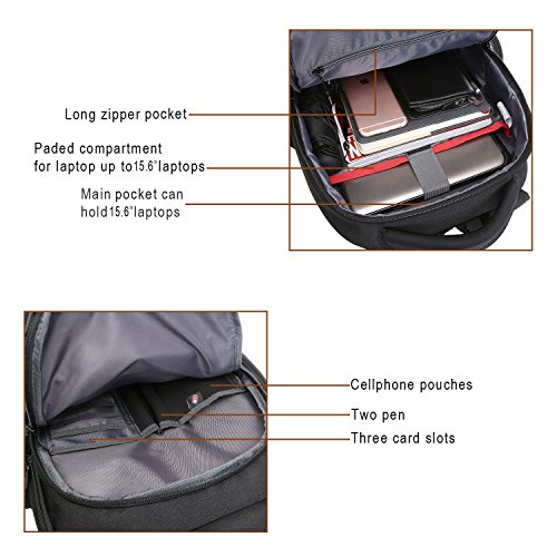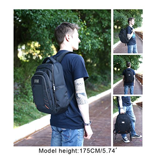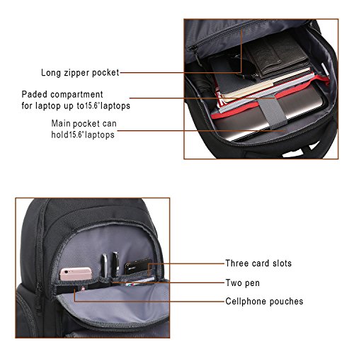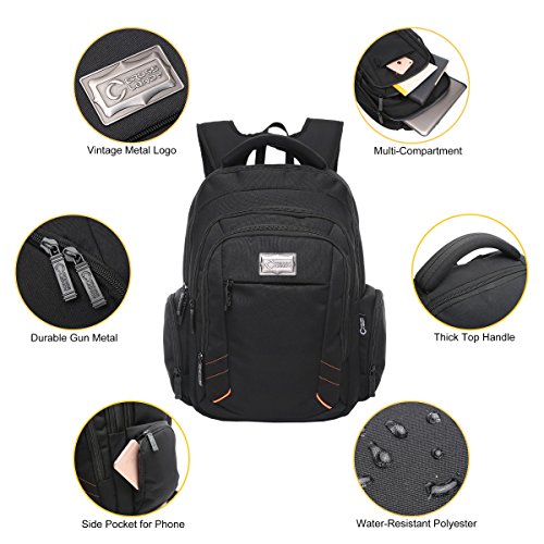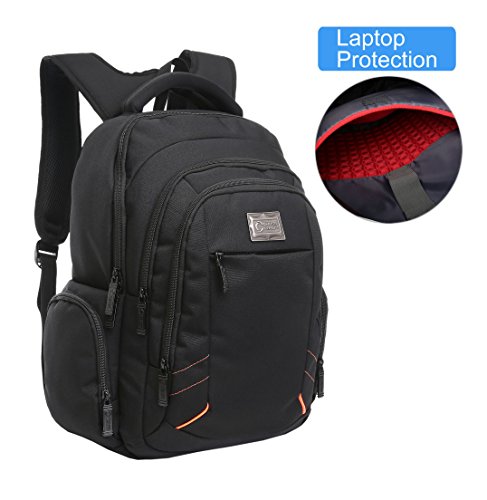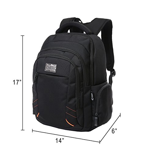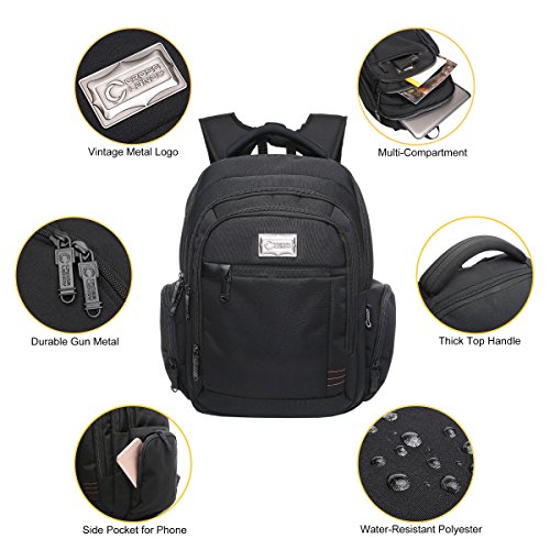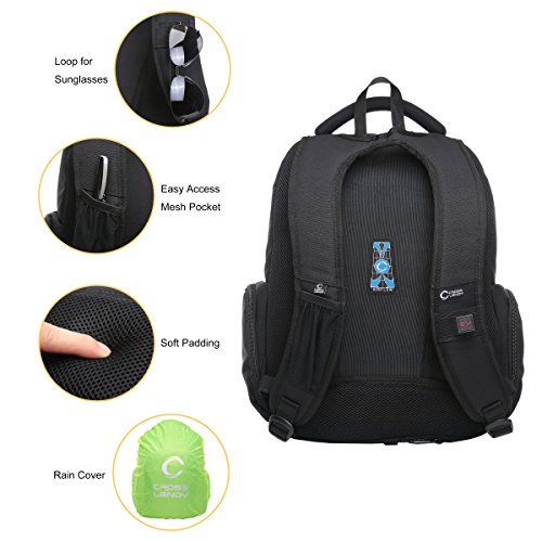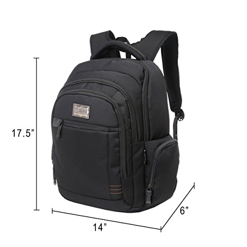 -. Feature : ★LIGHT AND WATER-RESISTANT: The black backpack is very simple but classic backpack made from lightweight and water-resistant polyster. We give a rain cover as present to double protect your backpack from wet weather / ★GOOD SIZE: 17.5" L x 14" H x 6"D. CrossLandy men's work backpacks suits business airplane travel, fitting under the seat on airplanes. The laptop backpack has 3 main compartments, 2 side zipper pockets, 1 exterior pocket and some easy-access and well-organize slots for pens, phone, passport, etc / ★TRIPLE LAPTOP PROTACTION: Large compartment with a laptop sleeve fits 13", 14", 15.6 inch laptops triple secured by bubble cushion and a velcro strap / ★ERGONOMIC AND COMFORTABLE: U-shape shoulder straps offers more contact area to relieve stress. Ergonomic soft padding offer carrying comfort. Ideal for daily use at school, college, work, weekend getaway, travel, overnight camping or business trip / ★SMART DESIGN: The college backpack has a loop on the left shoulder strap to hang your sunglasses and a mesh pocket on the right shoulder strap to hold a pen for easy access