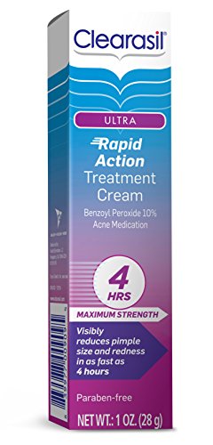 Dermatologist-tested Clearasil Ultra Rapid Action Vanishing Treatment Cream treats problem areas fast, visibly reducing redness and spot size in as little as four hours. Scientifically formulated with maximum-strength medication, Rapid Action Vanishing Treatment Cream penetrates your pores to fight breakouts. Contains Benzoyl Peroxide 10% Acne MedicationFeature