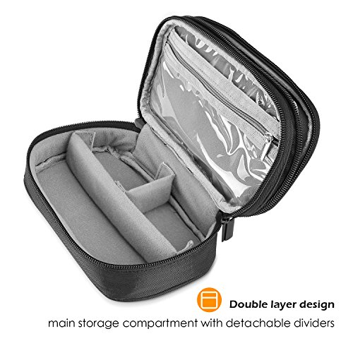 - Double layer design, main storage compartment with detachable dividers, clear zippered pockets, bracelet necklace snaps, earrings carrier straps and ring row to keep your jewelry separated; No tangle, no loss, no damage