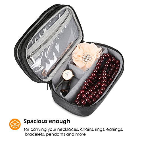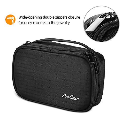ProCase Jewelry Case Travel Organizer Bag, Soft Padded Double Layer Jewelry Carrying Pouch Portable Jewelry Storage Holder for Earrings, Rings, Necklaces, Bracelet, Watch and Chains –Black