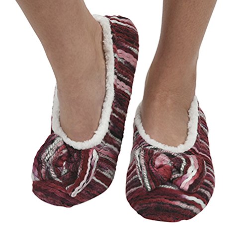 -. Feature : Made of Polyester with Comfort Split Memory Foam Slip Resistant Sole / Artisan Yarn Ballet Slipper Style with Soft Pom Pom Sherpa Fleece Lining / Womens Sizes In Artisan Yarn styles. Each pair of Artisan snoozies is unique due to natural variations in the yarn. / US Size scale as follows: Small: 5/6, Medium: 7/8, Large: 9/10, Extra Large: 11/12 / Machine Washable