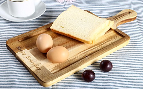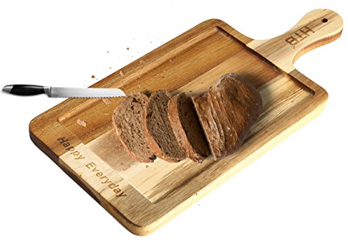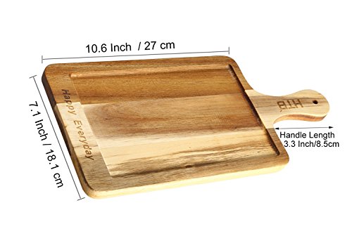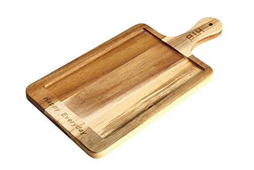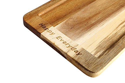 HTB Acacia Wood Charcuterie Cutting Board, Cooked Food Slicing Platter and Serving Tray for Crackers, Brie, Bread and Meat Rectangular Paddle Board Happy Everyday Engraved Wooden Cheese Board