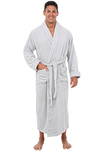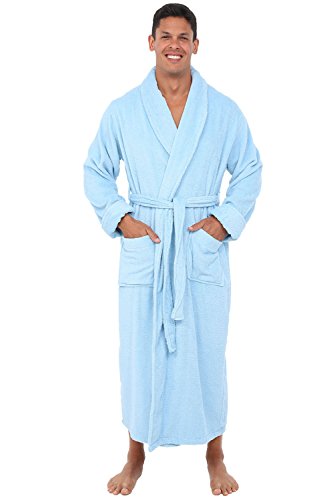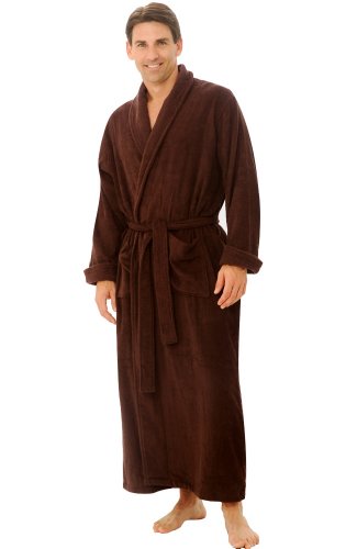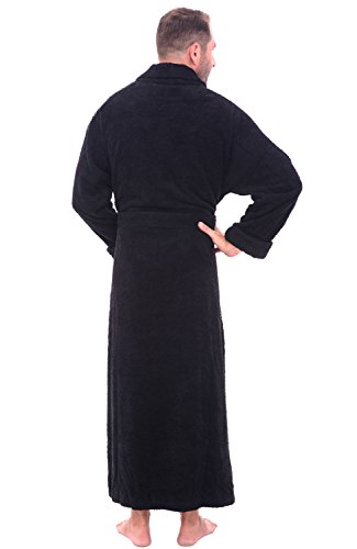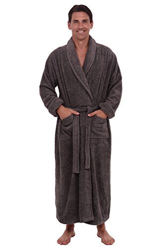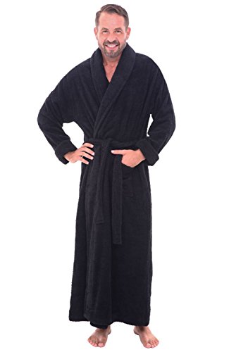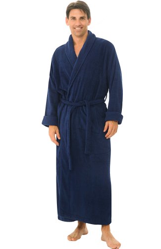 Binding : Apparel Product Description Ankle length terry cotton bathrobe for men and women from Alexander Del Rossa.? This unisex robe is made from 13 oz loop terry fabric on both sides, making it 100% water absorbent. Two full patch pockets and a shawl collar combine to add the element of comfort. Inactive dyes (chemical free dyes) were used in the production of this robe.? Superior quality.? If you're not completely satisfied with this unisex bathrobe returns are accepted. Washing Instructions: Wash in cool water with like colors.? Dry on low heat only. Sizing Recommendations: Small/Medium: Will fit Chests 34-40 inches, Robe length 57 inches Large/XL: Will fit Chests 42-48 inches, Robe length 59 inches 1XL/2XL: Will fit Chests 48-52 inches, Robe length 59 inches 3XL-4XL: Will fit Chests 54-60 inches, Robe length 59 inches