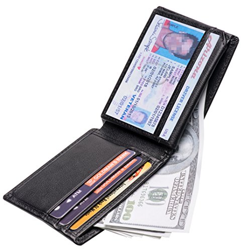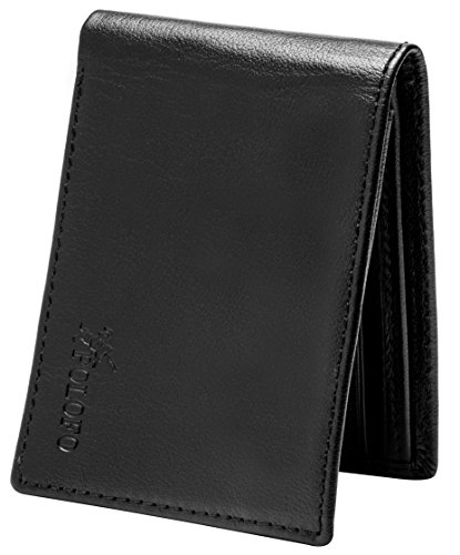 Binding : Apparel Product Description Features: - 100% genuine hand-crafted retro leather - 2 wide money pockets, a flip up ID window, 9 credit card slots , behind which are 2 semi-hidden compartments. - 4.25 x 3.25 x 0.5 inches - RFID signal blocking Package Includes: - 1* Genuine Leather wallet - 1* POLOFO packing box - 1* Velvet bag About Us: - POLOFO is our company's original brand, specializing in providing customers high-quality and competitive price leather products. About RFID - RFID: Radio-frequency identification, uses electromagnetic fields to automatically identify and track tags attached to objects. The tags contain electronically stored information. Our Credit/Bank/ID card, passport have encoded chips tags, and stored our personal/private information. So, we should protect them from information hacker and data thieves. - Data thieves can read your private data of cards at a distance of 10ft(3m), using a RFID scanner. Now, this RFID signal blocking wallet can protect your personal/private information safety. - This item can block signal from 10MHz to 30GHz. Credit/Debit/ID card, driver license, passport use the frequency of 13.56MHz. It won't block signal from ID badge, some old hotel room cards or building access cards, which use a frequency of 125 kHz.