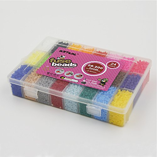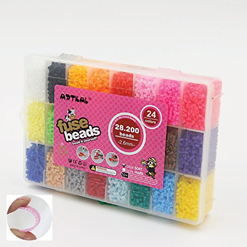 Item name: 28,200 PCS soft and flexible mini perler beads A-2.6mm 24 colors box set Item No.: CA24 Size: beads size 2.6mm; box size: 20*14.8*3.8 cm Colors: 24 base colors; abt 1,175 beads/grid; total abt 28,200 beads; 1pc big iron paper for free. Material: food grade EVA; passed EN71, ASTMS, 6P, GCC certifications. Remark: box set colors in random only, custom colors are NOT AVAILABLE.Feature