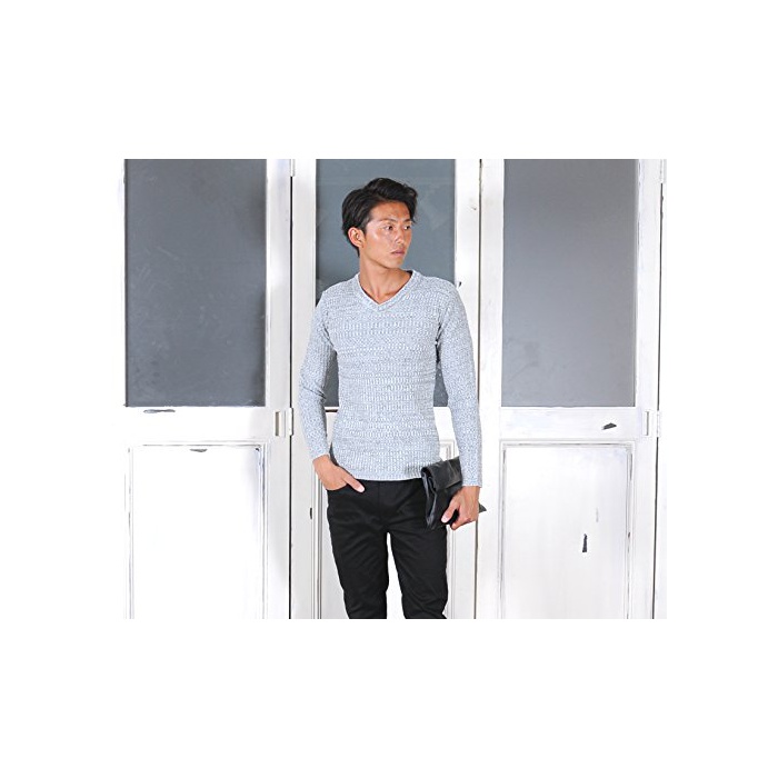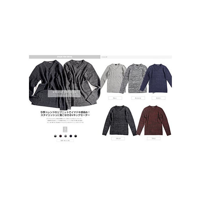 원본상품명: (スペイド) SPADE リブニット セタ メンズ ニット Vネック カットソ ストレッチ 【e596】 (M, グレ)