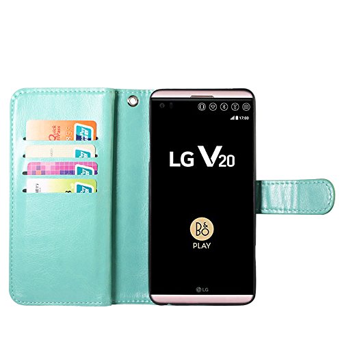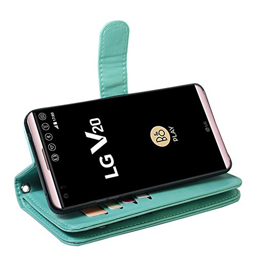 Perfect Design for LG V20. With hand strap.You can hold the strap to carry.With 12 card slot and cash slot SECURE WALLET CASE: This wonderful cover case is also multi-functionally designed to act as a case and secure portable wallet. With card slots & picture window & cash slot. The sides are carefully stitching.It will not split easily. PROTECTION: Four corner protection by high quality soft TPU inner skin shell. Shock absorbent material. The automatic magnetic closure holds the wallet securely closed protecting your phone_ credit cards_ and cash. Quality stitching and strong PU leather is resistant to wear and tear. HANDS FREE DESIGN:Case easily opens like a book with a built in kickstand that lets you make hands-free video calls_ read_ or watch movies anywhere comfortably.