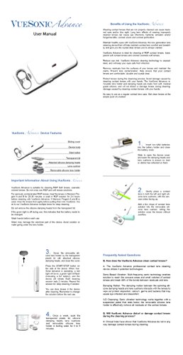 Studio : VueSonic LLC Publisher : VueSonic LLC Binding : Health and Beauty Product Description VueSonic Advance is the new generation VueSonic contact lens cleaner that will help maintain your gas permeable (RGP) contact lenses, transparent soft contact lenses, and colored cosmetic soft lenses comfort and durability, and give you the crystal-clear lenses you've always wanted. VueSonic owns three Patented technologies: "Multi-frequency sonic technology" which enables solution to reach the concave areas and small notches of contact lenses and break bonds between residuals and lens; "The damping motion" between the spinning silicone damping heads and lens cushions interacts with the lenses to wipe out protein deposition, calcium, germs, and bacteria that may cause eye infection and discomfort. "3D suspended pedal" that rests below the removable silicone lens holder effectively move residual out of the cushion and avoids redeposition. Cleaning Time: 2 minutes. 1 year manufactures warranty. 0