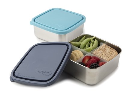 It's like having a few containers in one with our movable and removable divider. Use our 32-oz. BPA-free leak-proof stainless steel container with divider as a non-toxic alternative to plastic containers. This reusable bento-box-style lunchbox favorite is the perfect on-the-go solution for entrees like sandwiches, salads and cut fruit. Also use for takeout, salad bars, and to store your leftovers in the refrigerator or to bring them to the office the next day. Extreme temperature changes might cause lids to crack. We recommend keeping lids out of the freezer. Please remove stickers before getting container wet to prevent sticker residue. Container: 304 (18/8) food-grade stainless steel. Lid: non-toxic LDPE #4 plastic. Removable divider: PP #5 plastic. Container tare weight: 6.75 oz. Dimensions: 32-ounces, 5.75" x 5.75" x 2.5" BPA-free, phthalate-free and lead-free.