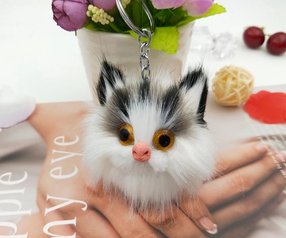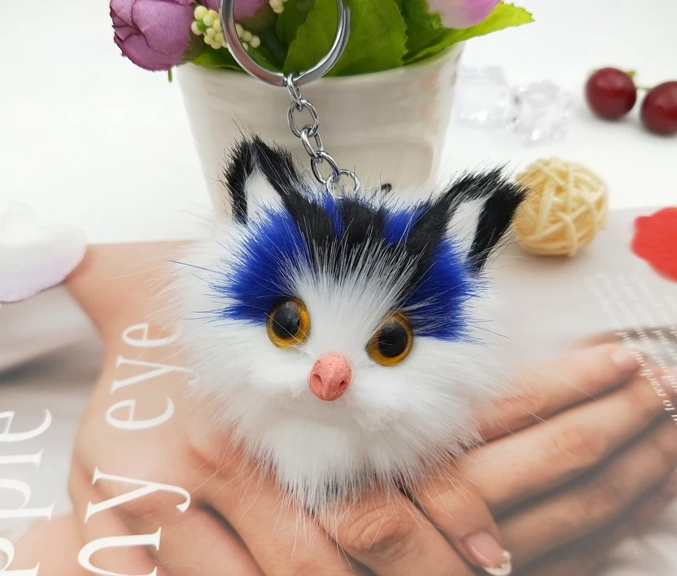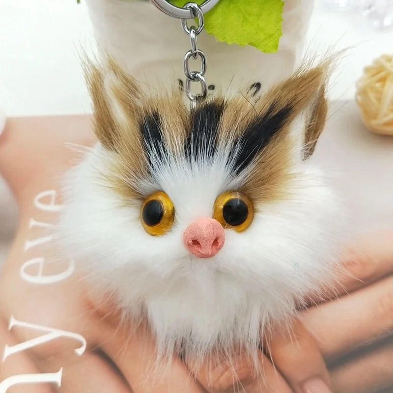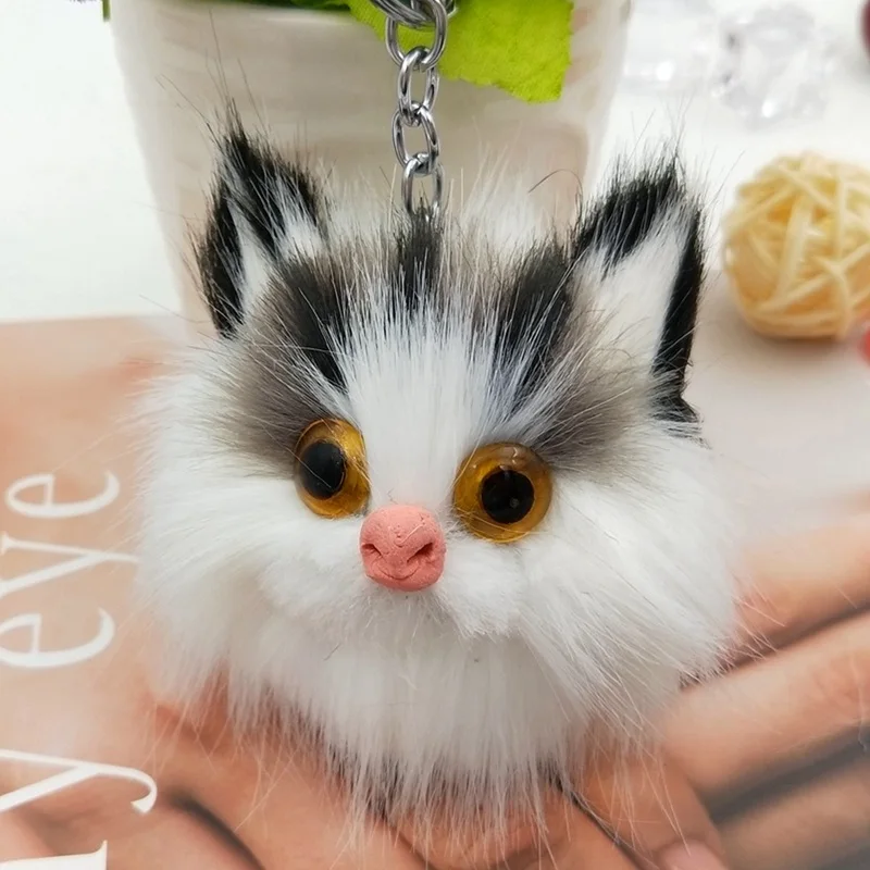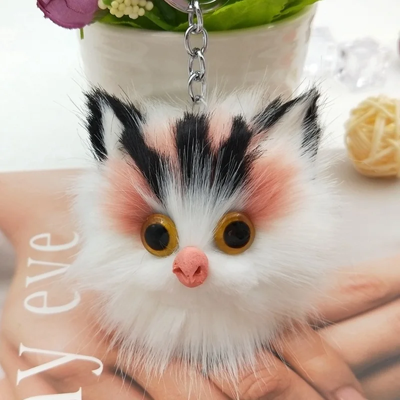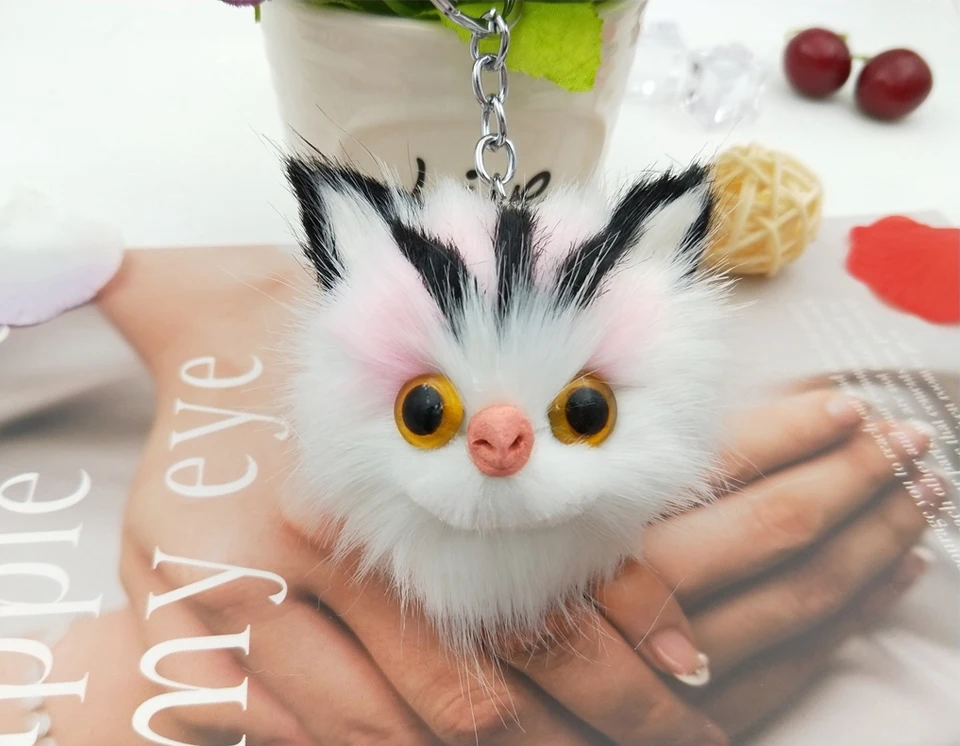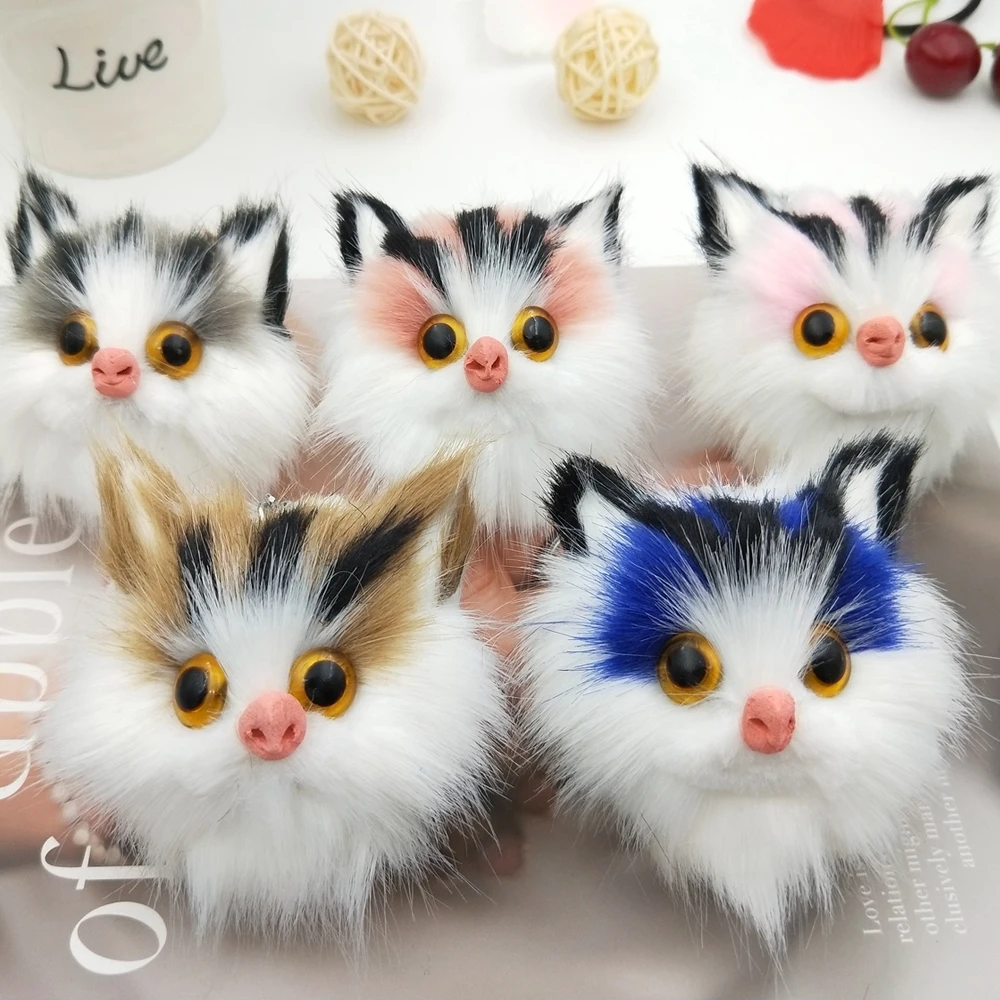 Item name:Pompon Fur Keychain Cute Cat Animal Key Holders