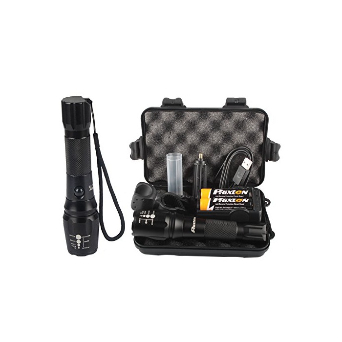 Phixton USB충전식 회중전등 고성능 강력 아웃도어 XML T6 LED 토치 1200루멘 알루미늄 조절 가능한 초점거리 줌식 5모드 방수 방재 군용 지진 대책-18650전지