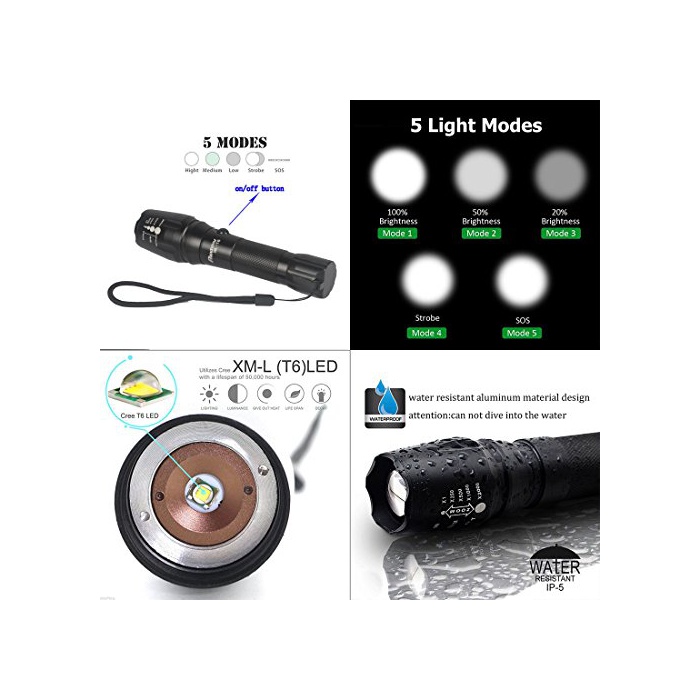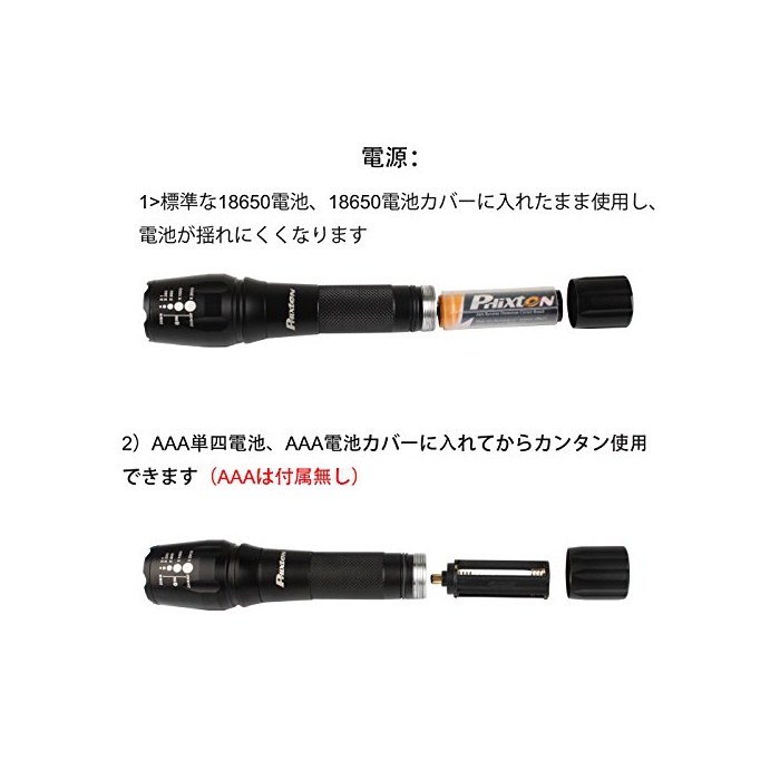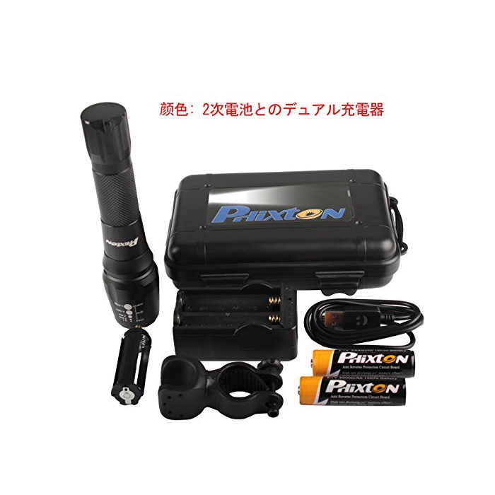 원본상품명: Phixton USB充電式中電 高性能力アウトドア XML T6 LED トチ 1200ルメン アルミ 調節可能な焦点距離ズム式 5モド防水防災軍用地震策-18650電池充電器付