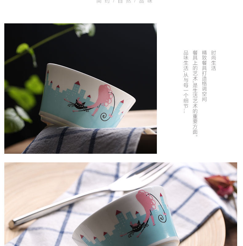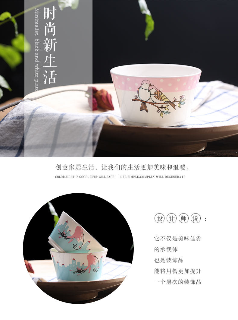 骨瓷饭碗 陶瓷米饭碗卡通家用瓷器韩碗套装餐具创意碗套装
