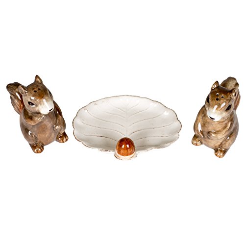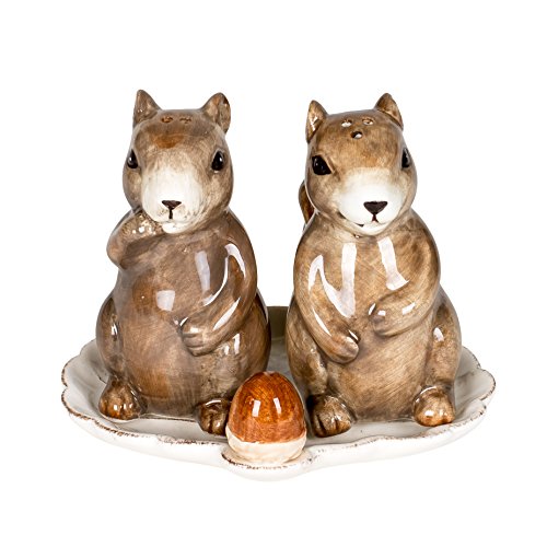 Playful Squirrel Pair 3.5 Inch Dolomite Salt and Pepper Shakers 3 Piece Set
