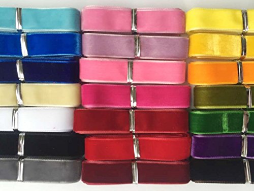 Chenkou Craft 20 Yards 5/8" Velvet Ribbon Total 20 Colors Assorted Lots Bulk