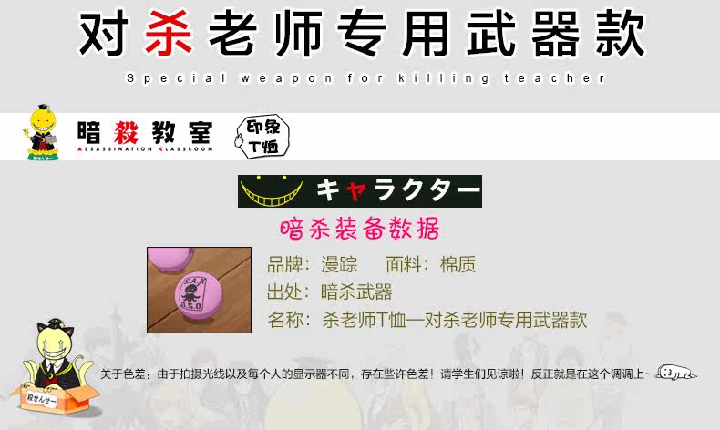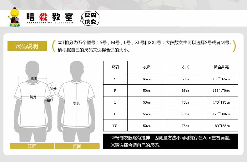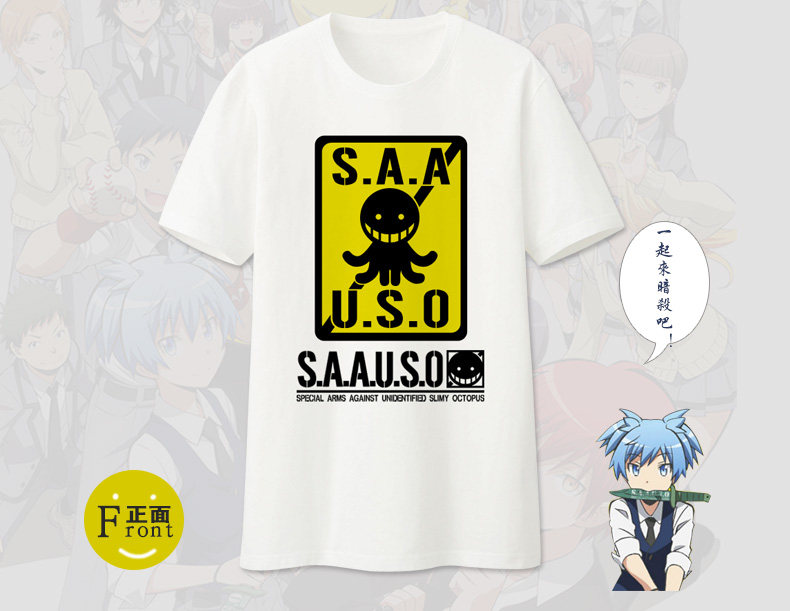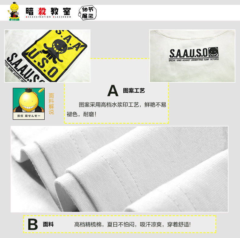 暗杀教室周边衣服 杀老师cos服 动漫白色纯棉短袖t恤