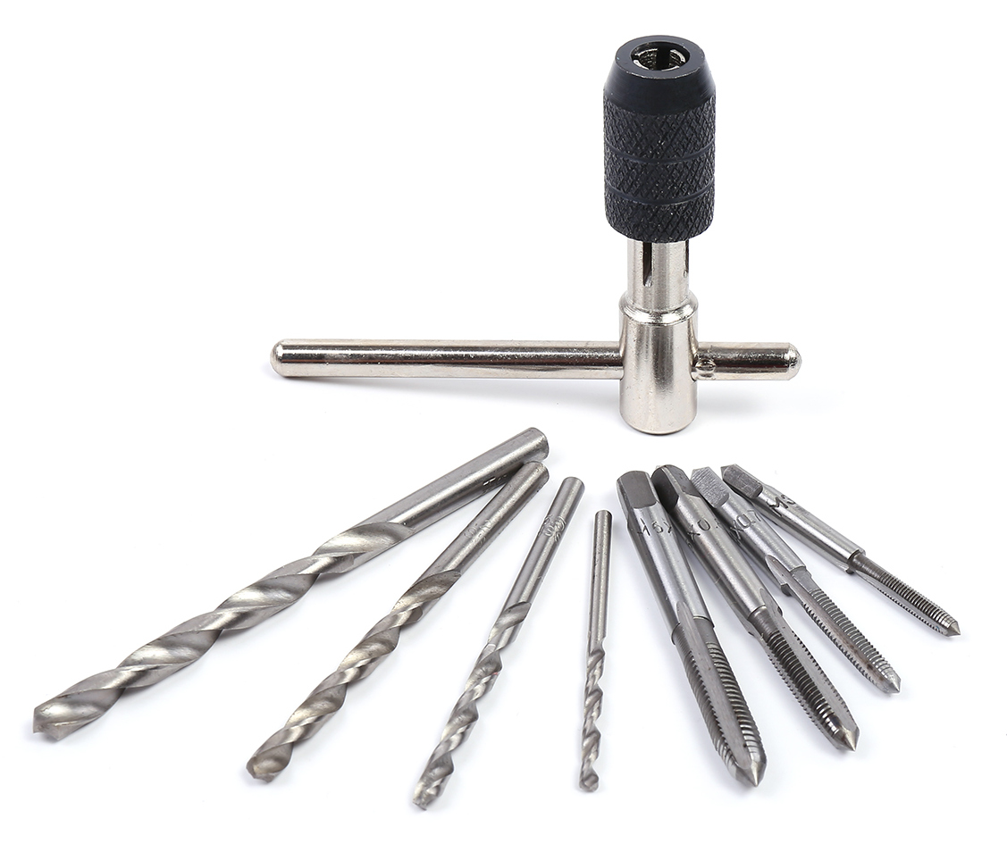 ・T-ハンドルタップレンチ9点セット セット内容:T-ハンドルタップレンチ×4、下穴ドリル×4、T型ハンドル×1