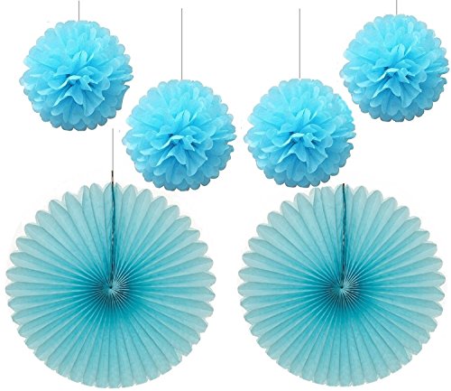 Joinwin 4pcs 10 inch Ice Blue Color Tissue Paper Pom Poms Mixed 2Pcs 16inch Ice Blue Tissue Paper Fans Hanging Decoration Party Baby Shower Decor (Ice Blue)